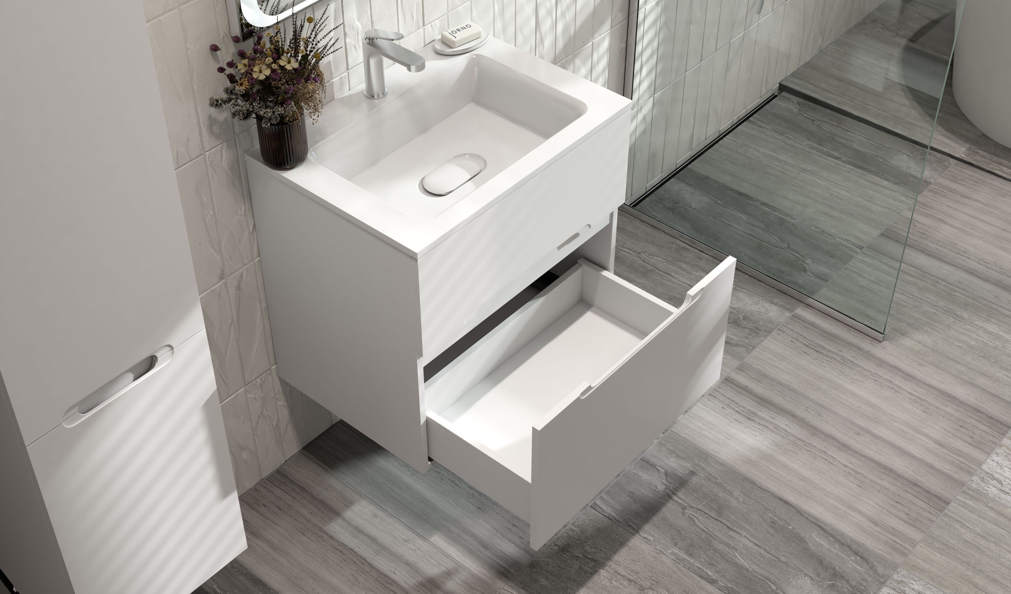 Откройте для себя подвесную тумбу под раковину Jorno Modul 65 — воплощение комфорта и элегантности, которое идеально подходит для современной ванной комнаты, сочетая практичность с утонченным стилем. Тумба Jorno Modul 65 станет функциональным центром вашего пространства, где каждая деталь продумана для удобства и долговечности.