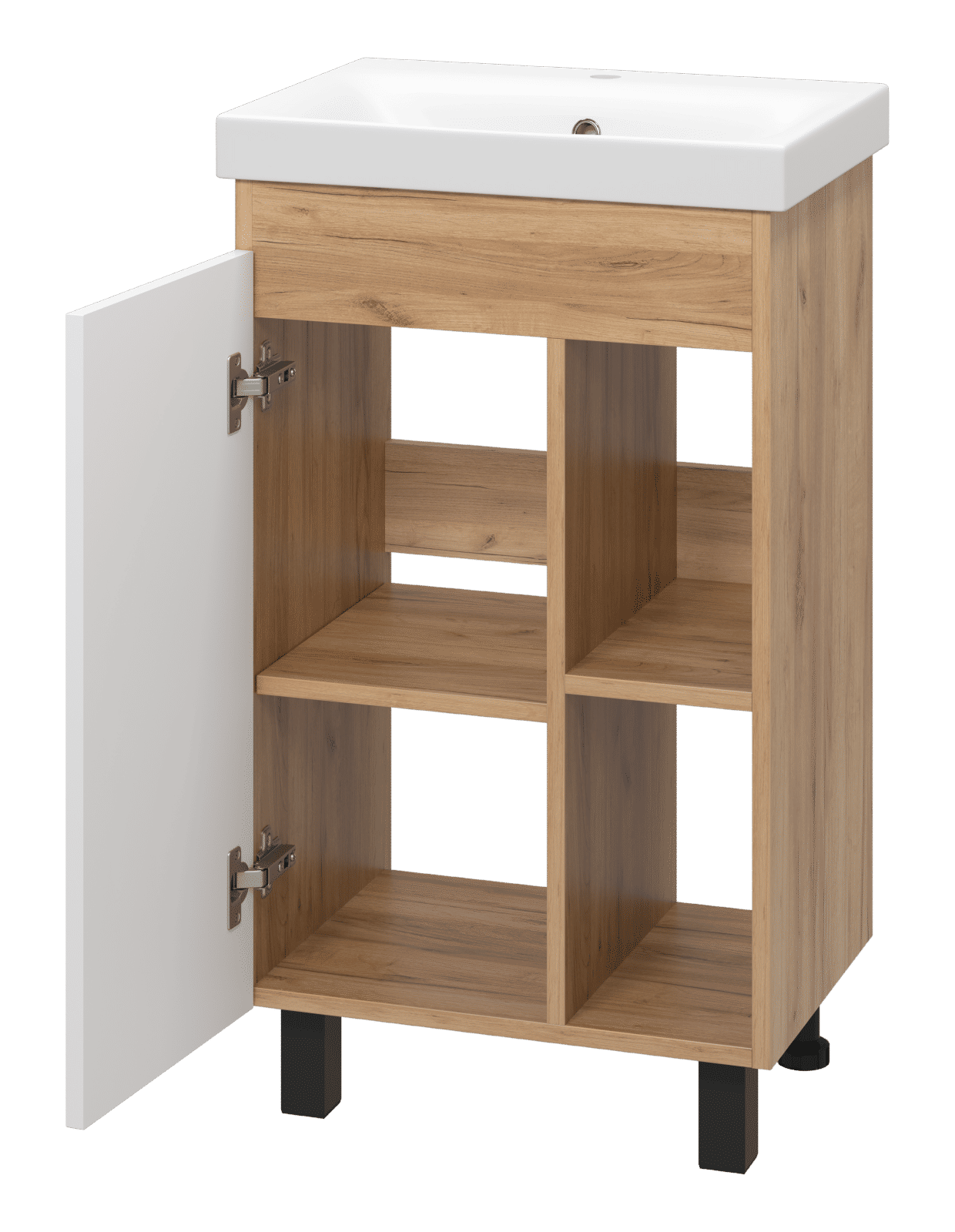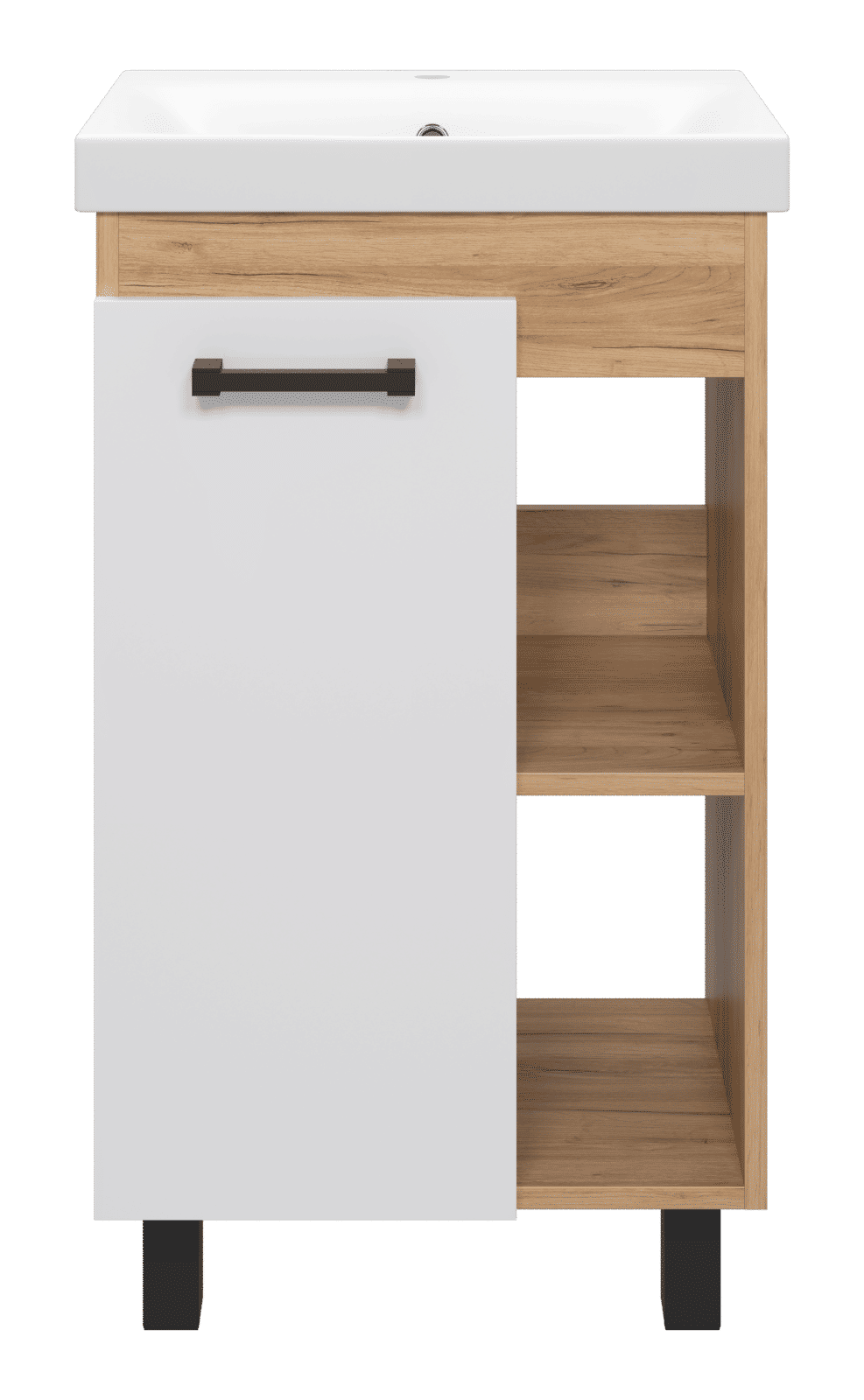 Тумба под раковину Misty Крафт 50 напольная 1 дв. ПВХ П-Кра-07050-011 белый/дуб крафт золотой