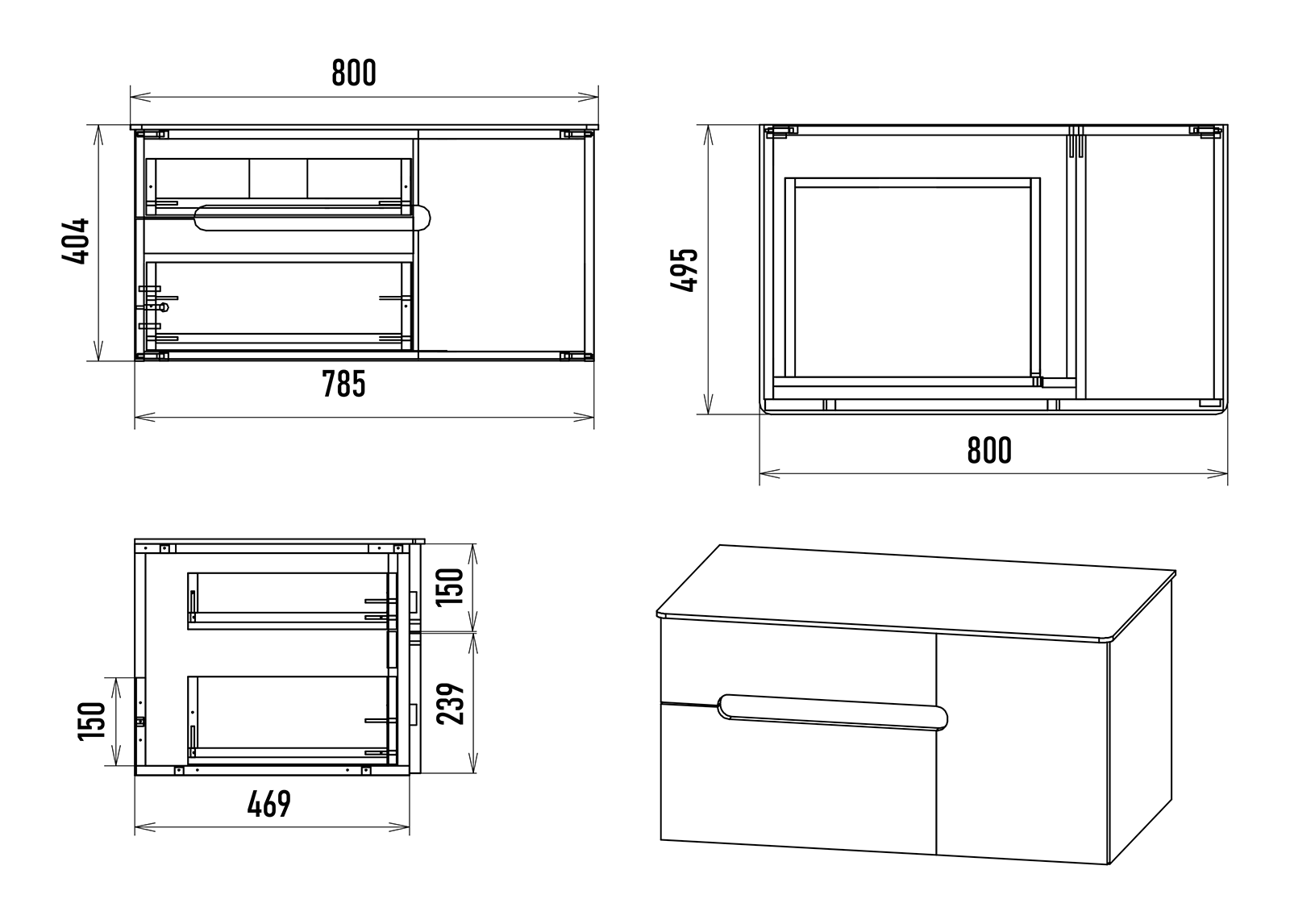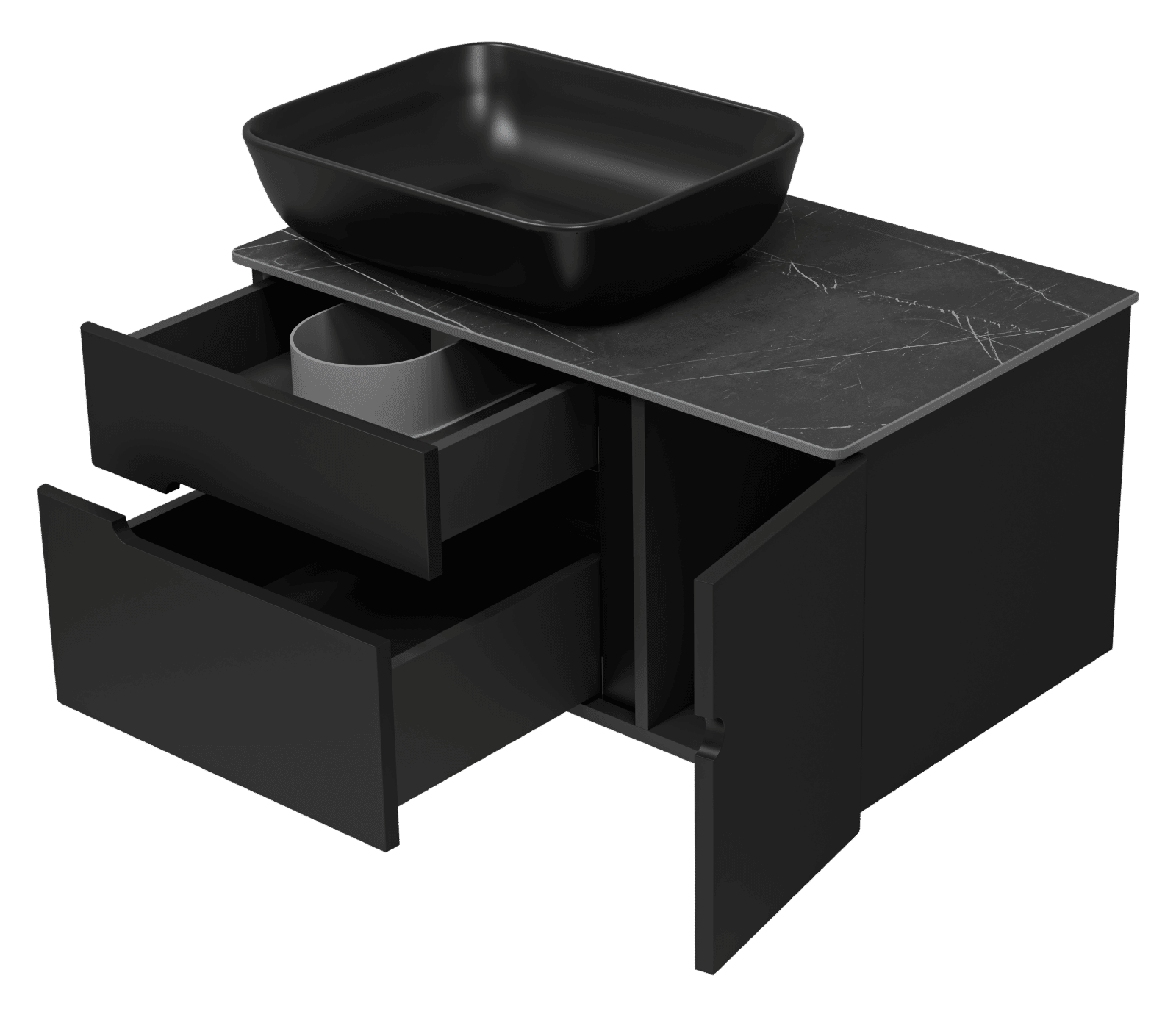 Тумба под раковину Роял 80 подвесная с 2 ящ. 1 дв./ П-Роя-01080-021П2Я черный