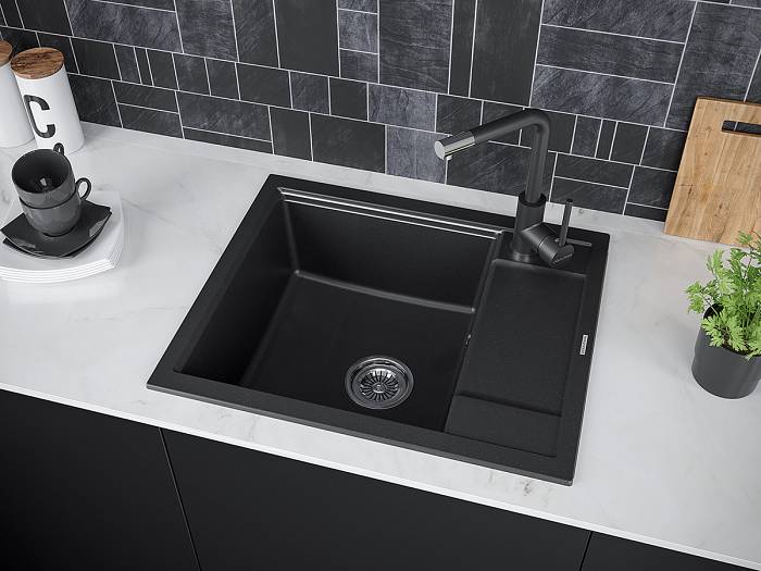 Кухонная мойка из искусственного камня Paulmark Flugen 50-600 из искусственного гранита PM216050-BL черный 600х500 мм