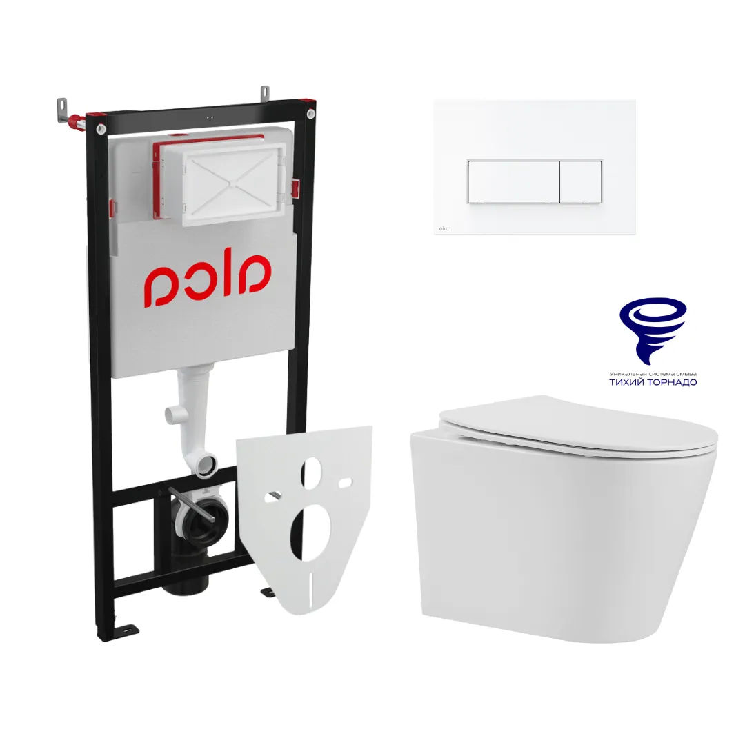 Унитаз подвесной с инсталляцией AlcaDrain (AlcaPlast) Prato Рим (торнадо) с инсталляцией AlcaPlast (AM101/1120+M570+M91) 5 в 1 белый