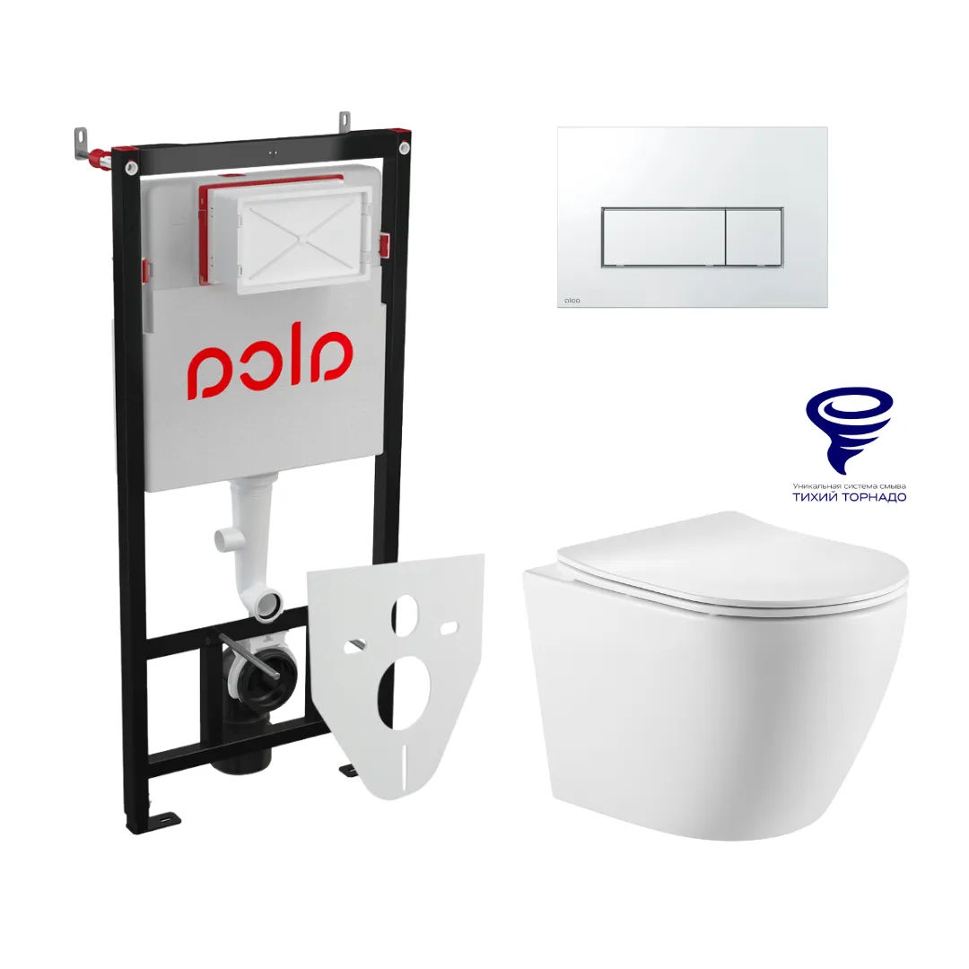 Унитаз подвесной с инсталляцией AlcaDrain (AlcaPlast) Prato Бьянко (торнадо) с инсталляцией AlcaPlast (AM101/1120+M571+M91) 5 в 1 хром