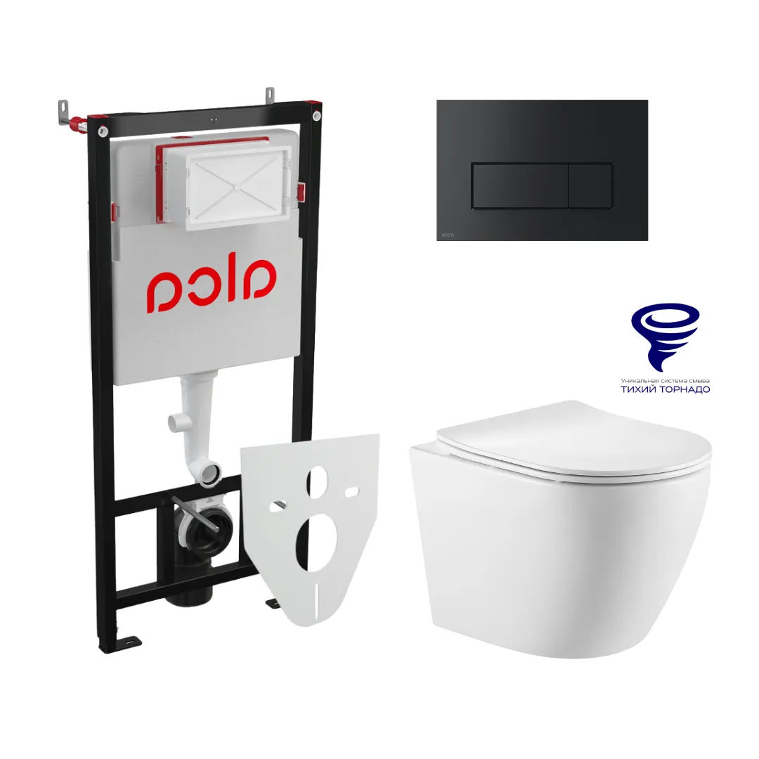 Унитаз подвесной с инсталляцией AlcaDrain (AlcaPlast) Prato Бьянко (торнадо) с инсталляцией AlcaPlast (AM101/1120+M578+M91) 5 в 1 черный матовый