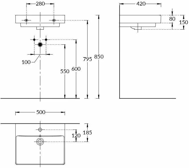 Раковина Kerama Marazzi PRO подвесная 50 с креплением / PROR.wb.50 белая глянцевая