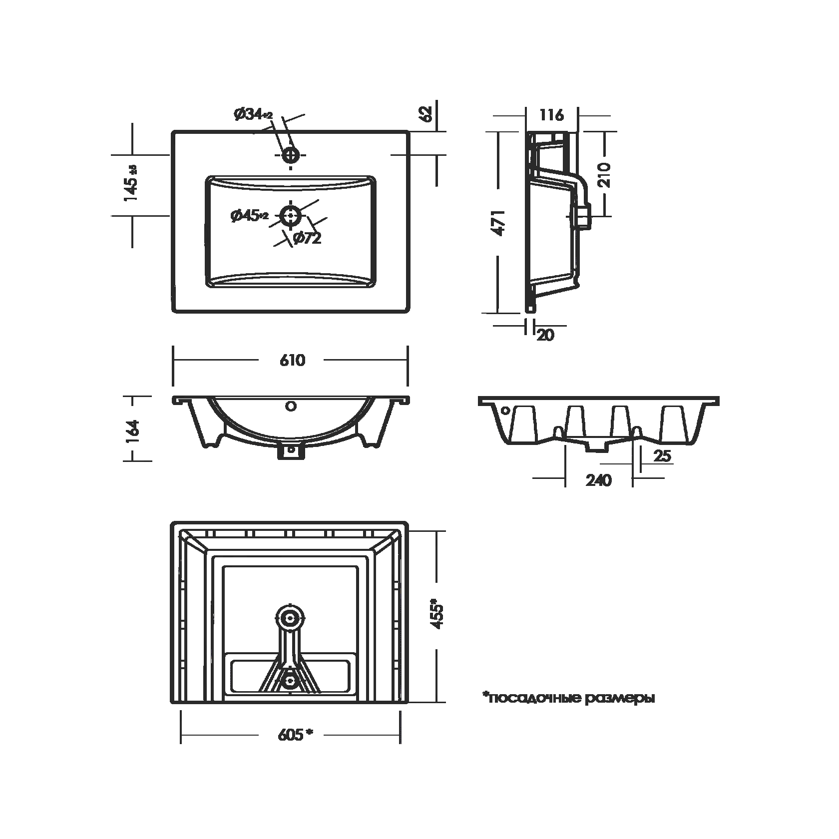 | Форма | Прямоугольная |