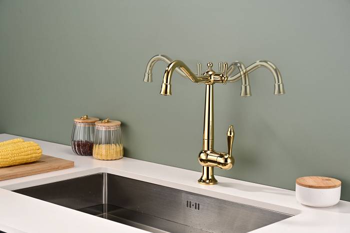 Смеситель для кухни Paulmark Retro Re213226-G золото