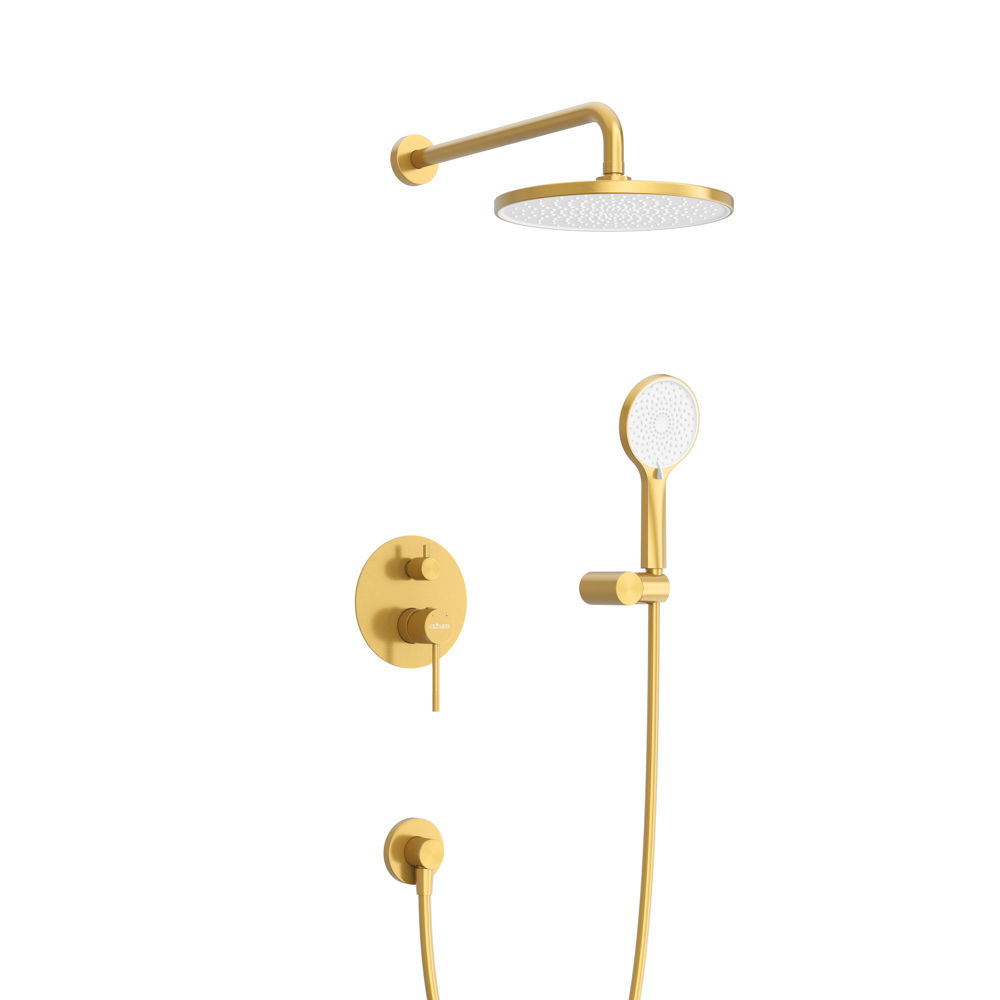 В комплекте с душевой системой вы найдете трехрежимную душевую лейку из прочного ABS-пластика, душевой шланг длиной 150 см и практичный поворотный держатель, что гарантирует вам максимальное удобство и гибкость в использовании. А верхний душ диаметром 220 мм из ABS создаст эффект тропического дождя, наполняя вашу ванную атмосферой расслабления и уюта.