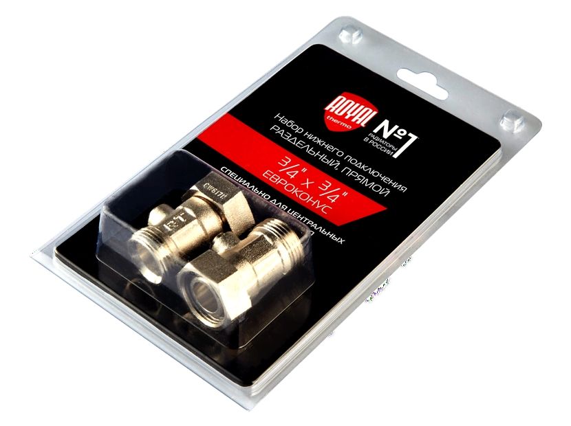 Наборы нижнего подключения Royal Thermo предназначены для подключения секционных радиаторов с нижними подключением. Клапаны являются запорными и могут использоваться для отключения прибора отопления от системы.