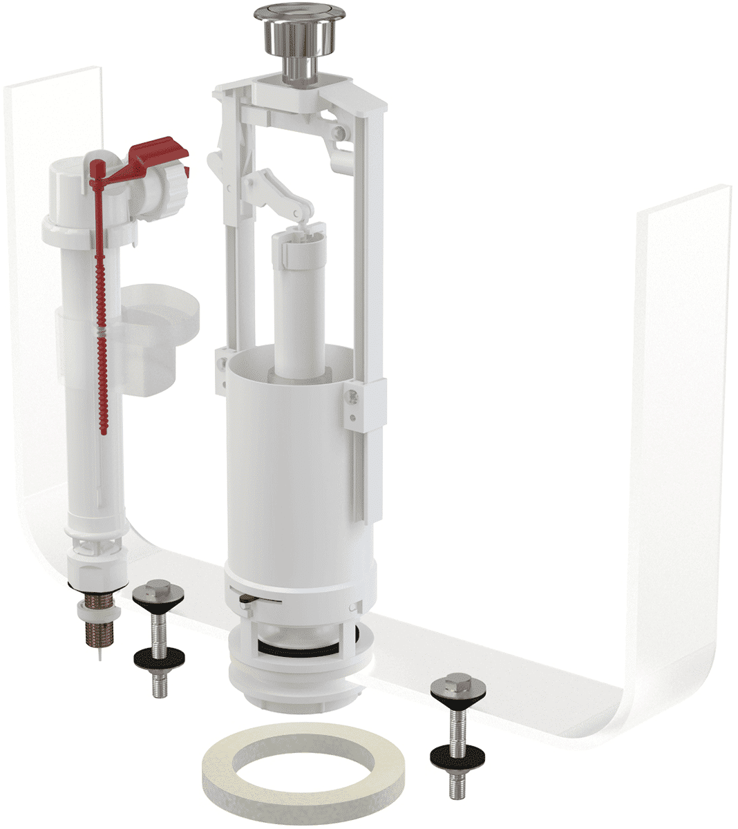 Вы сможете регулировать уровень воды и настроить объем спускаемой воды с помощью поплавка. Низкая чувствительность к перепадам давления в водопроводе гарантирует стабильную работу, а конструкция позволяет регулировать высоту механизма в зависимости от высоты бачка. Механизм промывки START/STOP обеспечивает удобство использования — промывка прекращается повторным нажатием кнопки. Хромированная кнопка может быть установлена мимо оси спускного механизма, что добавляет дополнительную гибкость в установке.