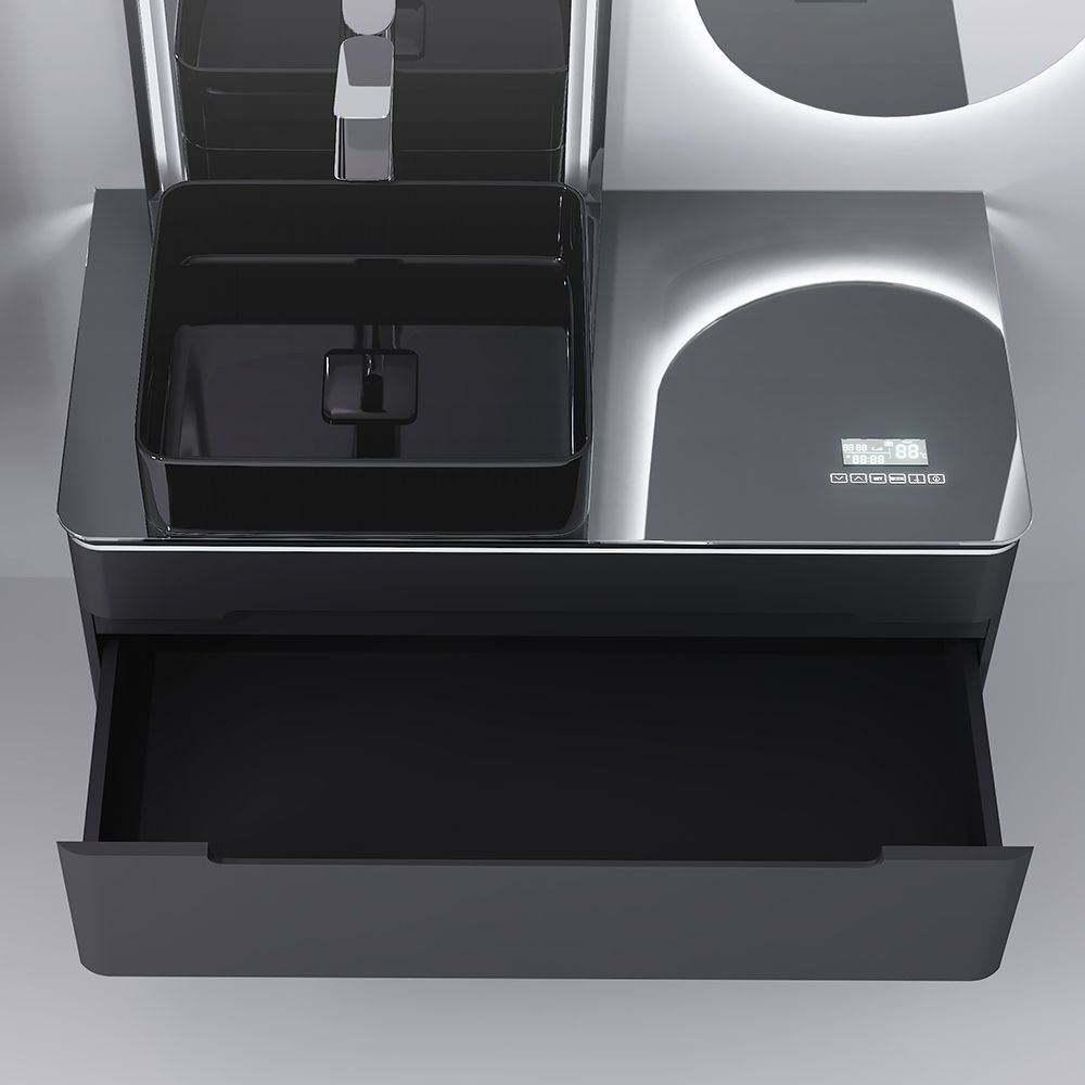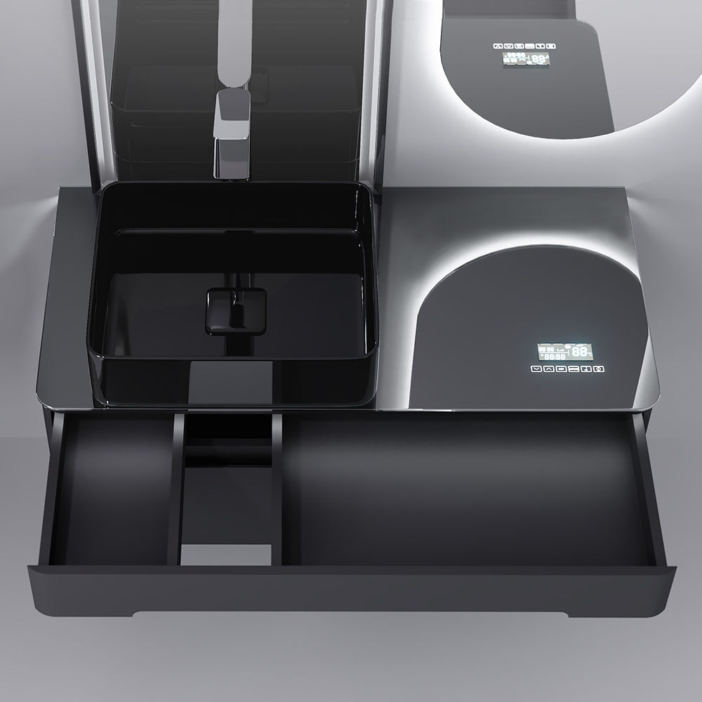 Встроенный Bluetooth МедиаМодуль открывает доступ к музыке, часам и температурному контролю, позволяя наслаждаться любимыми треками или отслеживать время прямо у раковины. Влагостойкие колонки обеспечивают качественный звук без риска повреждений от воды, а подсветка с сенсорным включателем мгновенно создает уютное освещение. Ящики оснащены системой плавного закрывания для тихого и комфортного использования, с внутренним дополнительным отсеком для мелочей. Фурнитура выдерживает до 80 000 циклов работы и нагрузку на ящики до 25 кг, обеспечивая надежность на годы вперед.