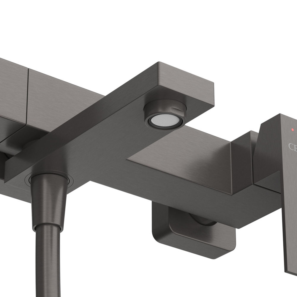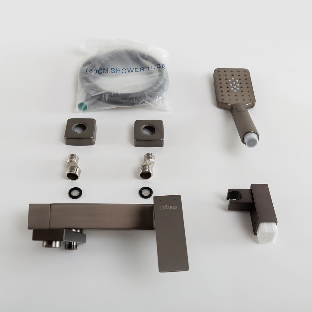 Смеситель для ванны Cezares SLIDER-VD-GM однорычажный в комплекте с ручным душем, шлангом и держателем (оружейная сталь)