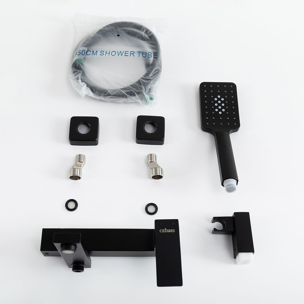 Смеситель для ванны Cezares SLIDER-VD-NOP однорычажный в комплекте с ручным душем, шлангом и держателем (черный матовый)