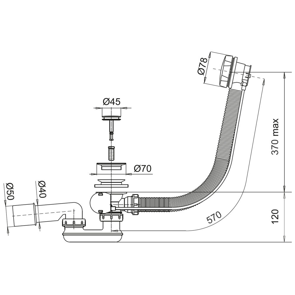 Сифон для ванны WHITECROSS 60 см SPWC60GLB (брашированное золото)
