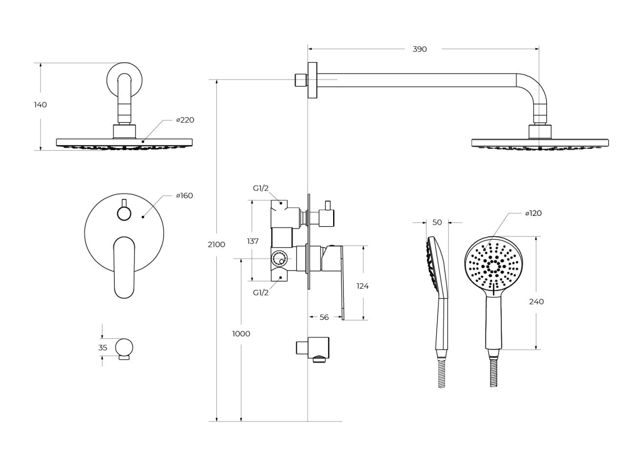 | Размер верхнего душа, см | 22 |