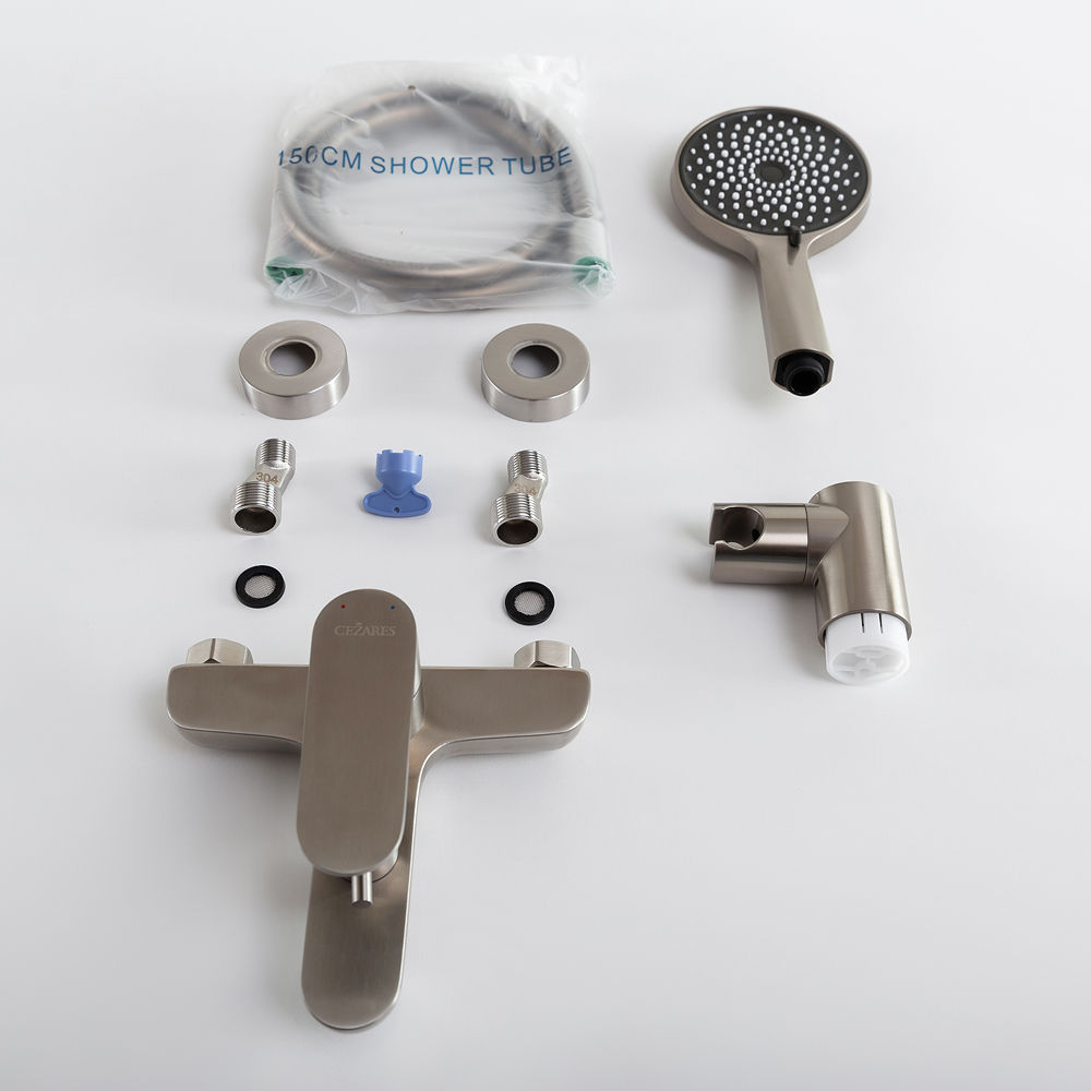 Смеситель для ванны Cezares STYLUS-VD-IN однорычажный в комплекте с ручным душем, шлангом и держателем (сатин)