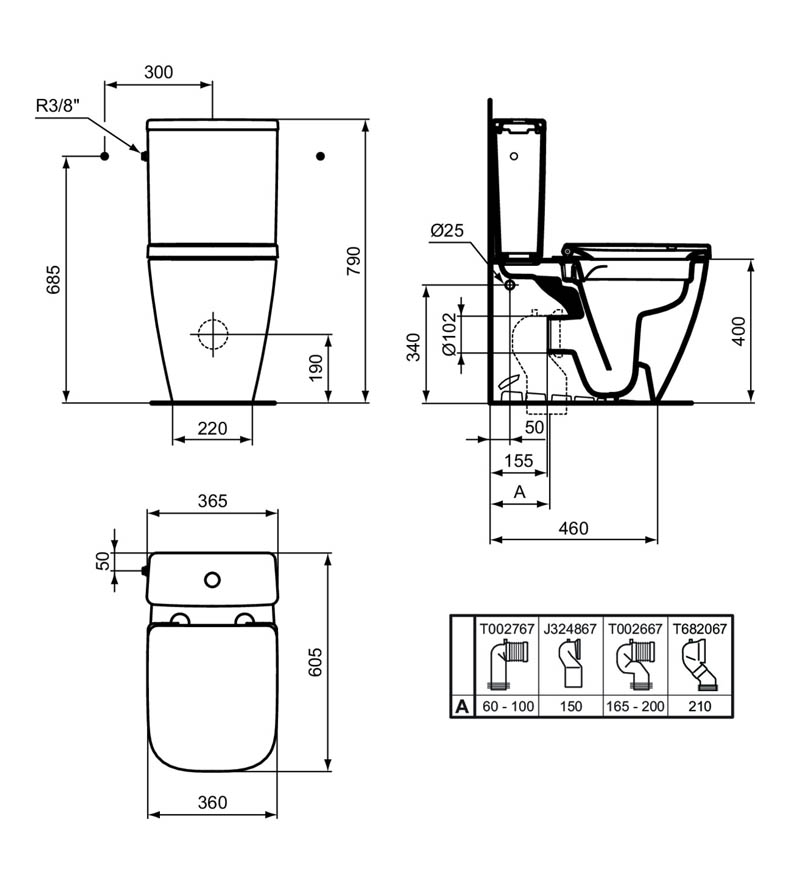 Напольный унитаз Ideal Standard i.life S безободковый пристенный + сиденье Soft-close / T500001+T473501+T532901