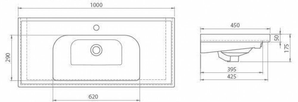 Раковина CeraStyle Frame 100х45 см / VB015A02U00 белый