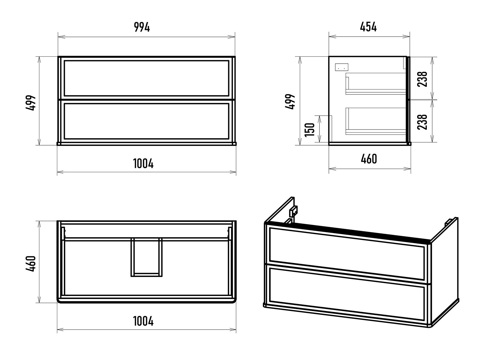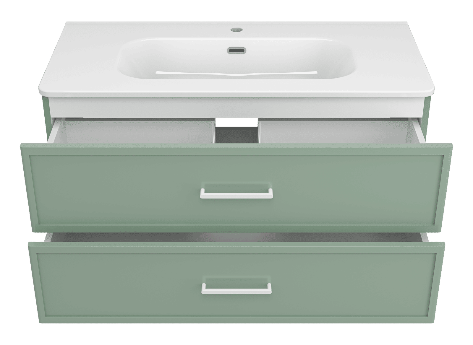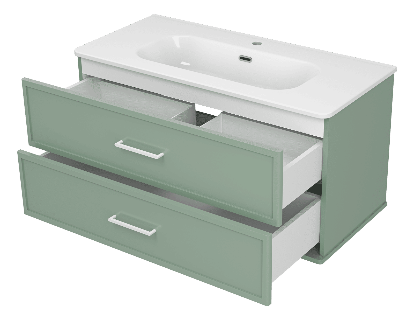 Практичность на первом месте: два выдвижных ящика, предназначенных для хранения разнообразных вещей, оснащены направляющими со скрытым монтажом и доводчиком, гарантируя плавное и бесшумное открытие для удобного доступа. Подвесной монтаж добавляет легкости и свободы пространству, позволяя легко убирать под тумбой и поддерживать чистоту.
