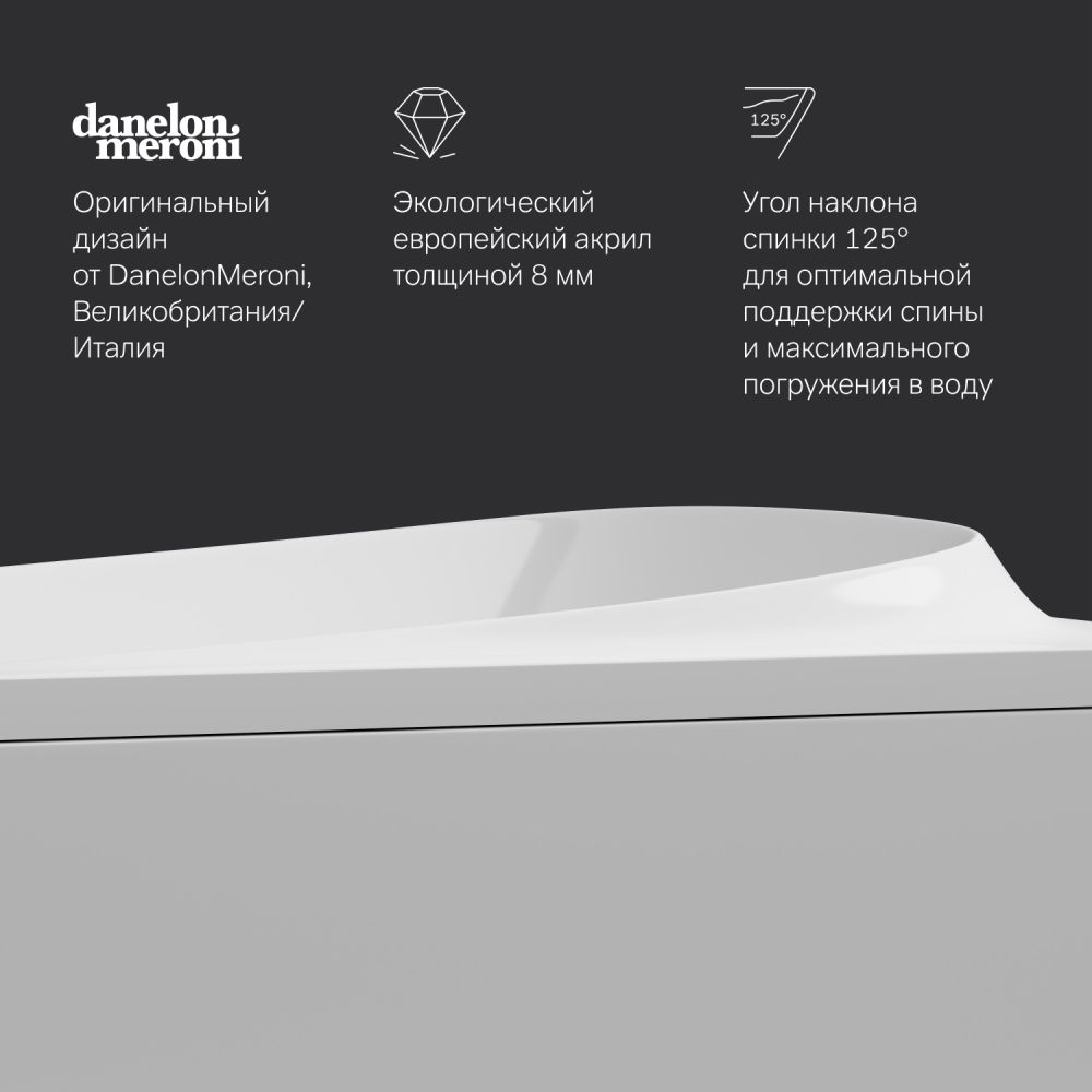 Одна из самых удобных ванн на рынке: угол наклона спинки 125°, разработанный совместно с ведущими терапевтами, обеспечивает оптимальную поддержку спины и максимальное погружение в воду.