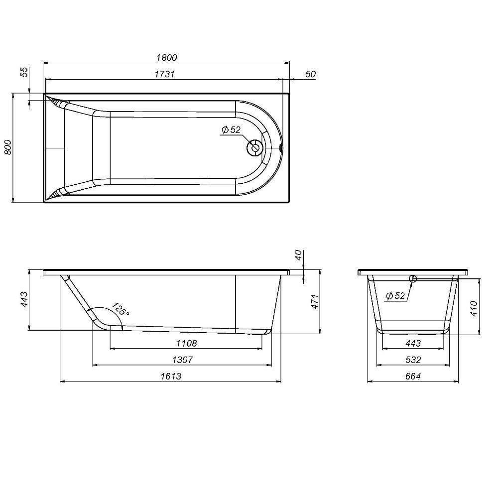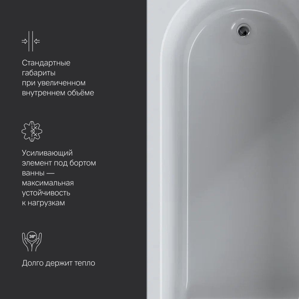 За счет низкой теплопроводности и теплоемкости акрила ванна поддерживает температуру набранной воды. А оптимальный угол наклона борта в 125° снимает нагрузку с позвоночника.