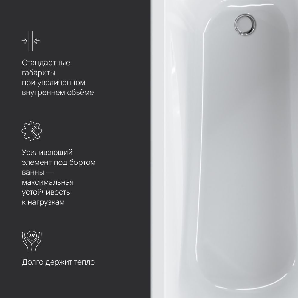 - Низкая теплопроводность и теплоемкость акрила поддерживает температуру набранной воды в ванне.