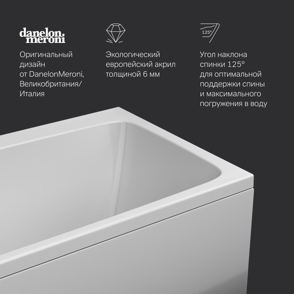 Разработанный совместно с ведущими терапевтами угол наклона спинки 125° обеспечивает оптимальную поддержку спины и максимальное погружение в воду. За счет низкой теплопроводности и теплоемкости акрила ванна поддерживает температуру набранной воды значительно дольше. В комплекте декоративная заглушка сливного отверстия.