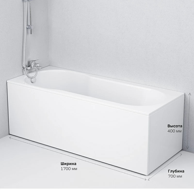 Дизайн ванны выполнен с учетом разделения зон: на душевую и релаксационную для комфортного приема водных процедур в ванне.