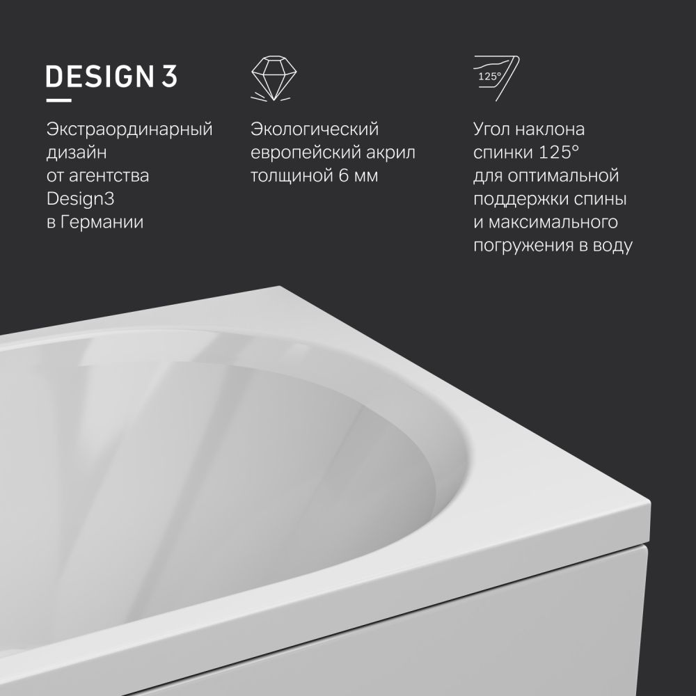 Ванна производена из высококачественных европейских материалов. Для армирования ванны используется смола без использования стирола — отсутствие запаха и вредных выделений, которая обеспечивает повышенную прочность.
