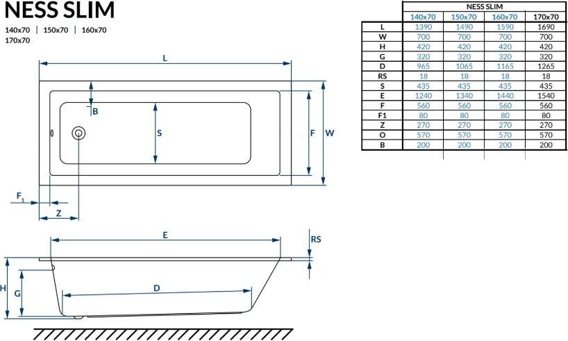 Акриловая ванна Excellent Ness Mono Slim WAEC.PRO7.160.070S 160×70 без ножек