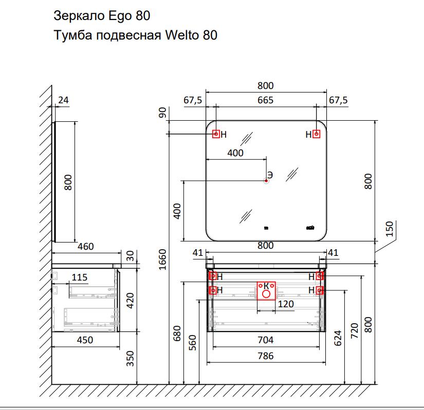 Тумба под раковину Raval Welto 80 подвесная Wel.01.80/P/W/RL белая