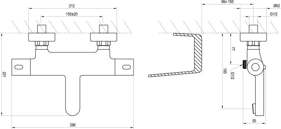 Смеситель для ванны Ravak Termo 300 TE 023.00/150 X070097 настенный термостатический без гарнитуры