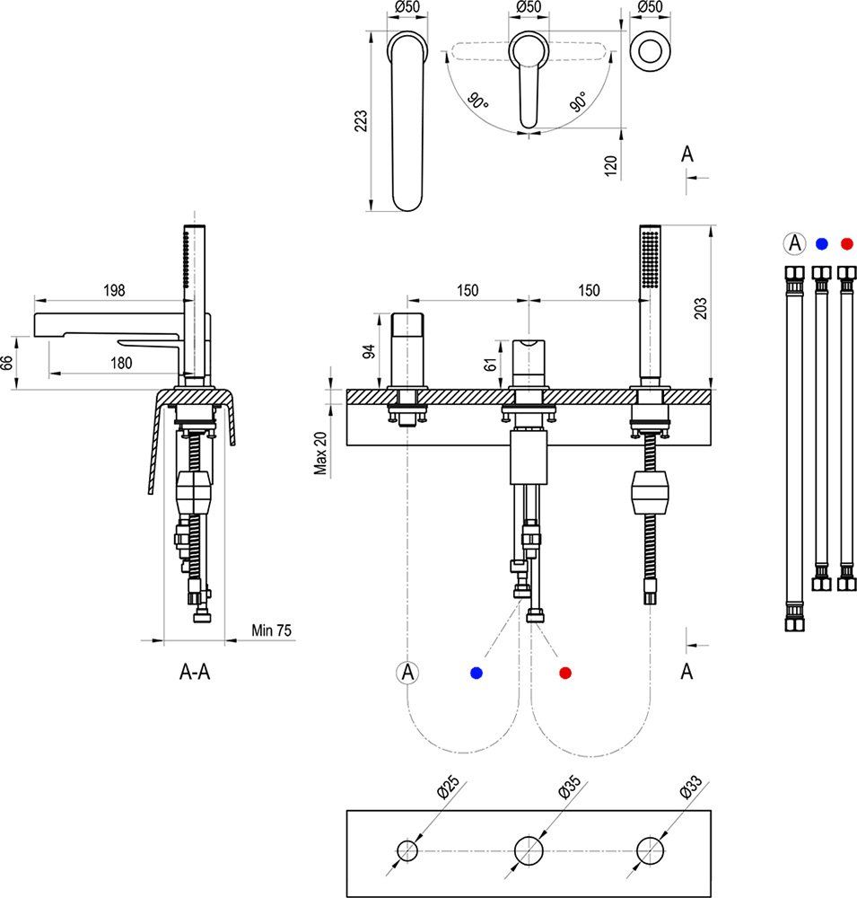 В последнем отверстии скрыта стильная выдвижная лейка с металлическим шлангом длиной 175 см — идеальный аксессуар для удобного и гибкого использования душа. Смеситель Ravak PU 026.00 подарит вам полный контроль над комфортом и станет надежным помощником в создании уютной и функциональной ванной зоны.
