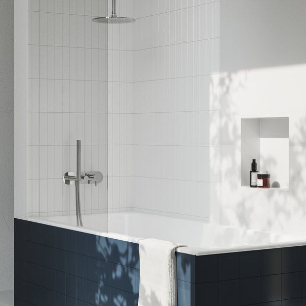 Естественная красота смесителя достигается благодаря безупречным пропорциям каждой детали: плавный рычаг обеспечивает точную и комфортную регулировку температуры и расхода воды, а дивертер легко переключает поток между наполнением ванны и душем. В душевом углу переключение между верхним тропическим душем и ручной лейкой происходит просто и удобно, даря максимум комфорта.