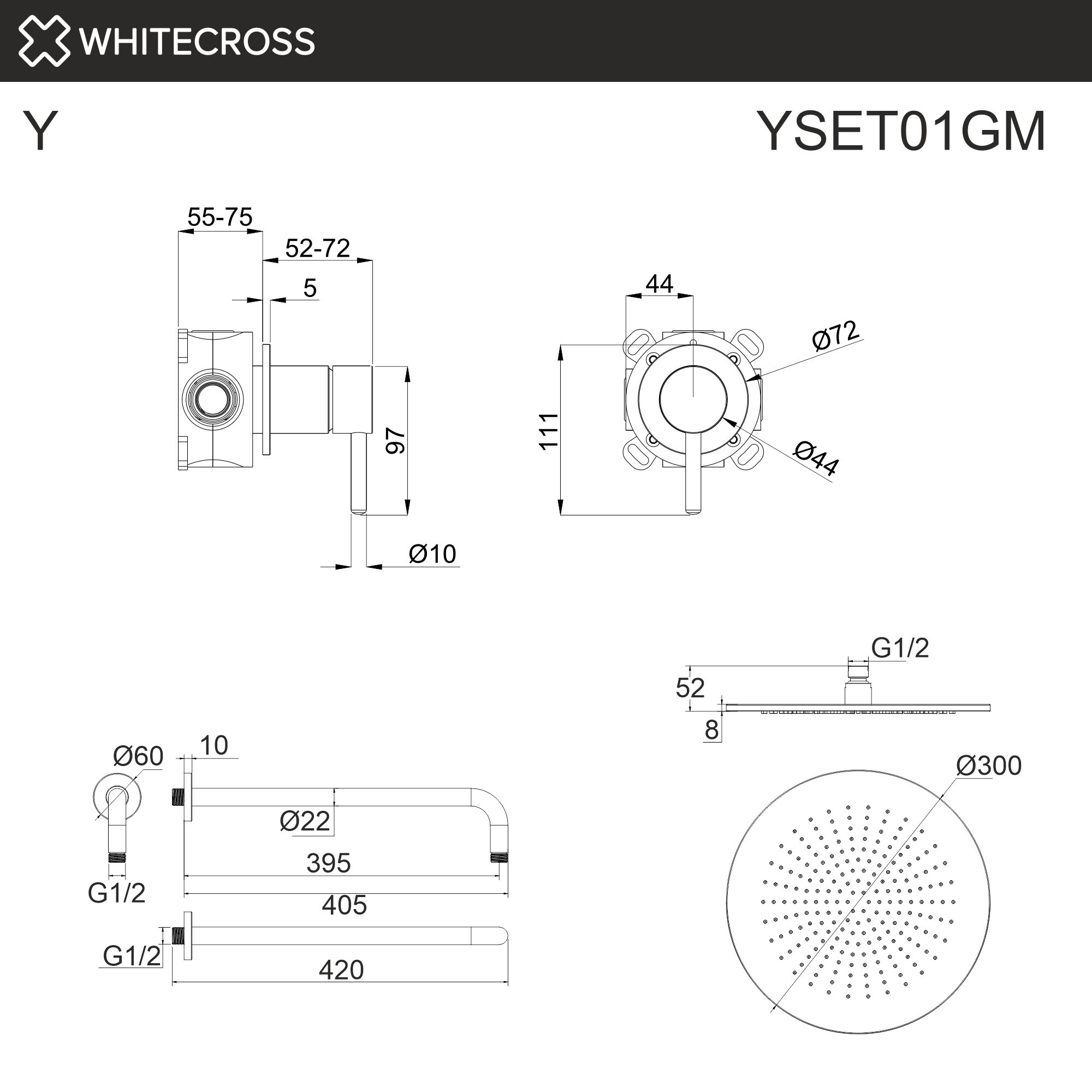 Система для душа скрытого монтажа WHITECROSS Y YSET01GM (оружейная сталь)