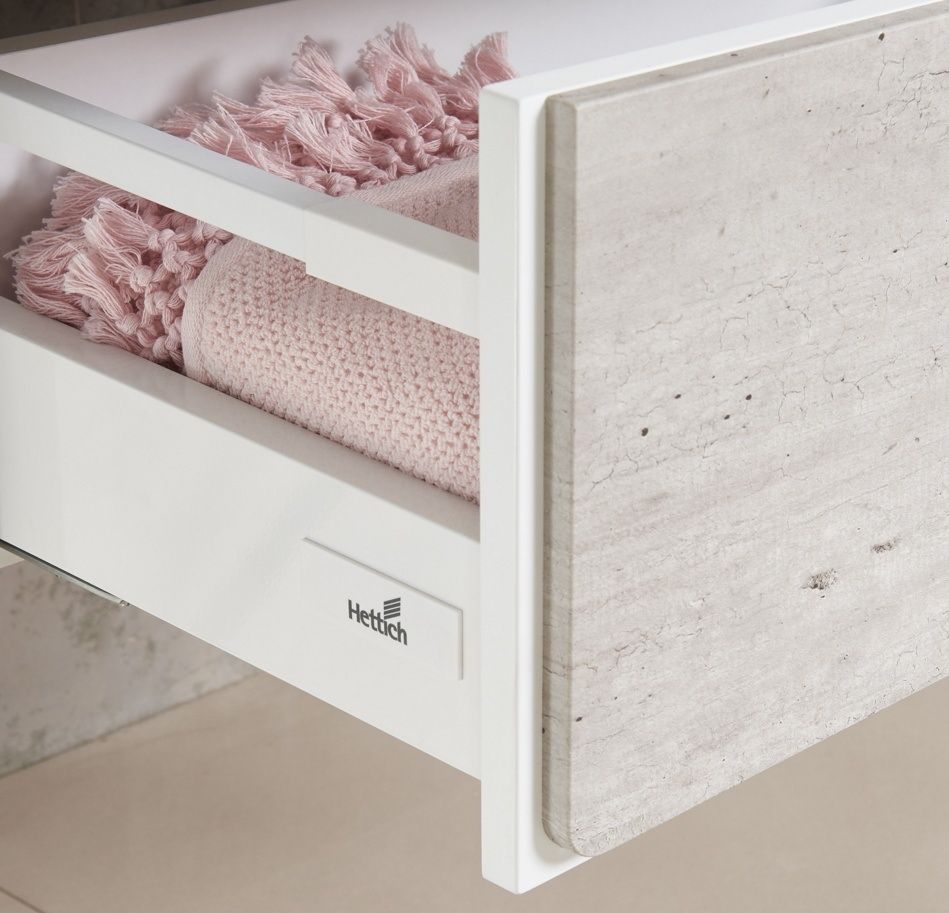Тумба оснащена двумя просторными ящиками, которые обеспечивают удобное и организованное хранение всех необходимых предметов. Благодаря усовершенствованным направляющим Hettich из Австрии, ящики обладают системой push/open с синхронизатором — достаточно легкого нажатия, чтобы открыть их без усилий. Полное выдвижение и плавный довод гарантируют комфортное и бесшумное использование, а надежность механизмов проверена временем.